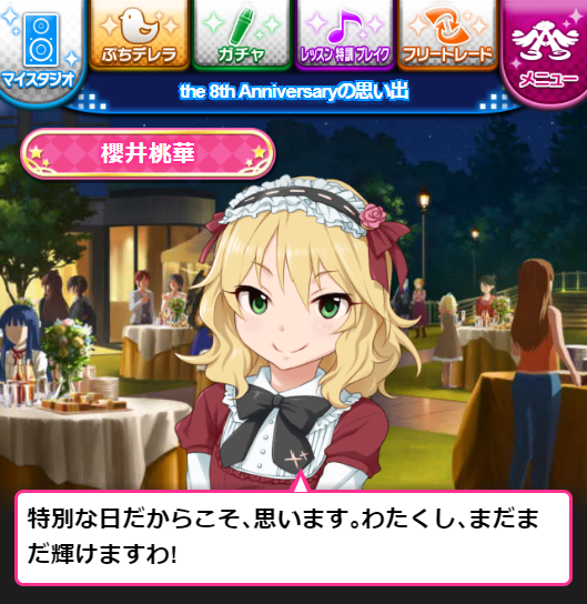 4thアイプロで桃華からもらえた回復アイテムについては、アイドルプロデュース the 4th Anniversary#報酬アイテムを参照。